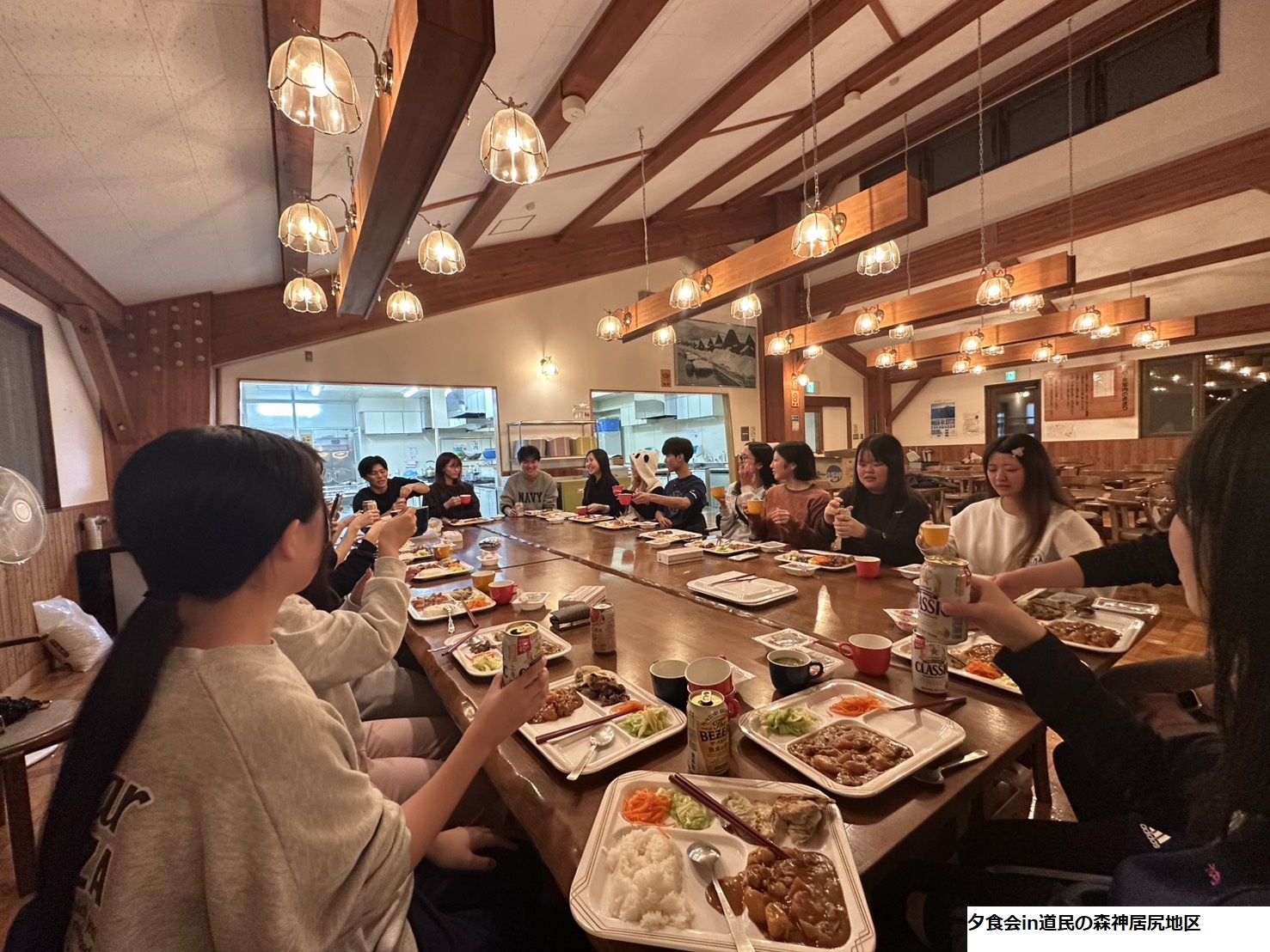 フィールドワーク初日は、当別町の本町地区を訪問。学生たちは5つのグループに分かれ、地元の飲食店を訪ね歩きながら、街歩きと地元住民との交流を行いました。まちの雰囲気や店舗の個性、人のつながりなどを実際に肌で感じながら、地域の観光資源や可能性を探る貴重な体験となりました。その夜は、道民の森神居尻地区の宿泊施設にて宿泊し、地元の自然環境に囲まれた空間でゼミ生同士の意見交換や学びを深めました。