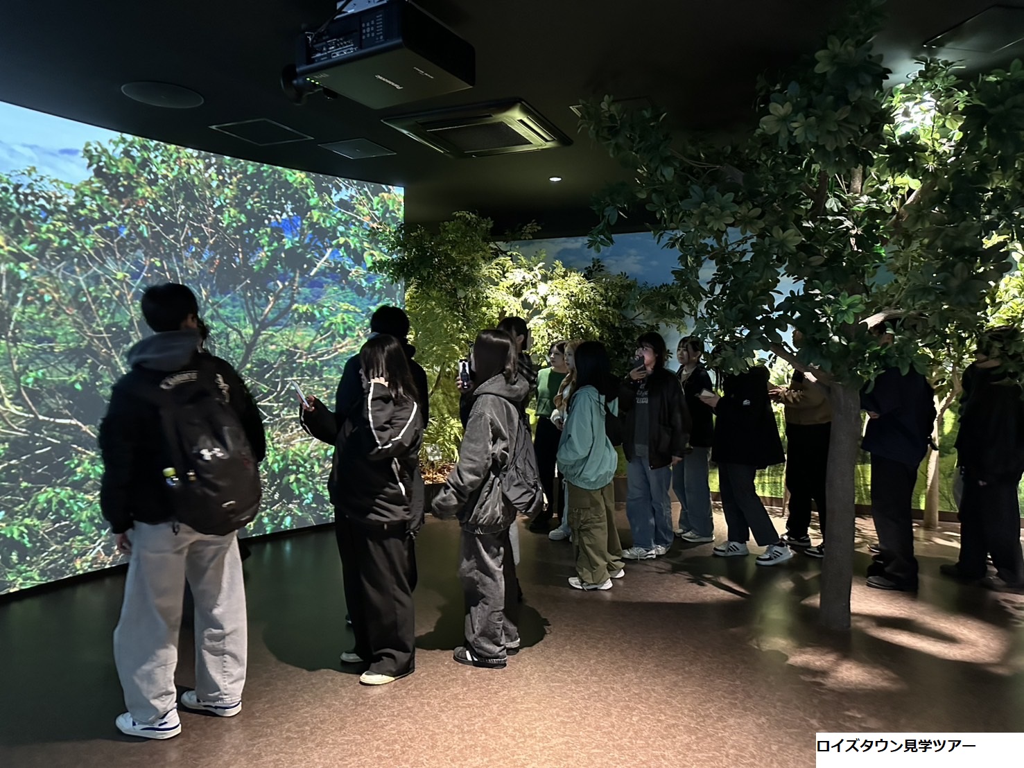 2日目は、ボランティアガイドの案内のもと、「森の観察会」に参加し、神居尻地区の自然や生態系について学びました。普段の学内では得られない、五感を通した自然体験が学生たちに新たな視点を与えました。 午後には、当別町にあるロイズタウン工場を訪問し、チョコレートの製造工程や地域との関わりについての見学ツアーにも参加しました。