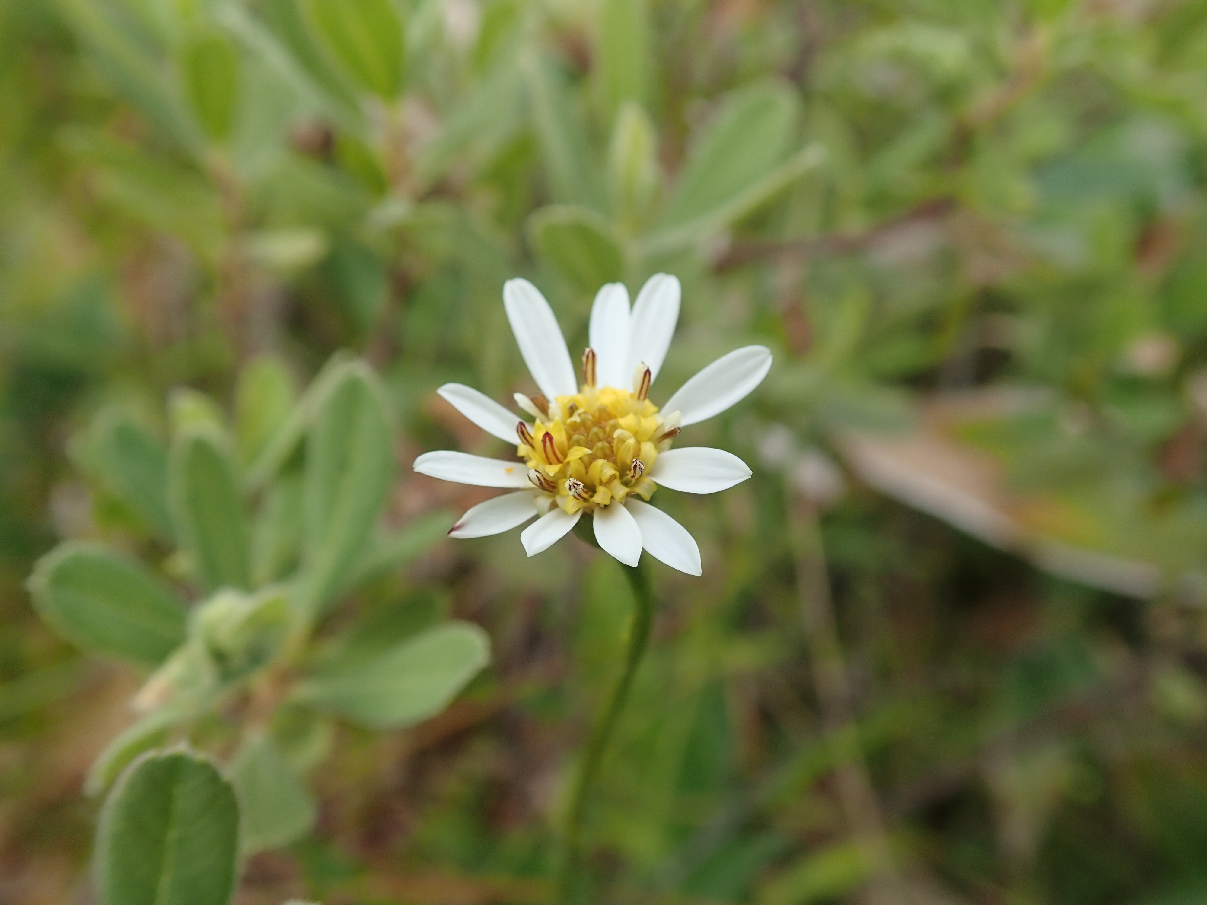 次に、石狩川流域最大の残存湿原である美唄湿原(美唄市)に移動し、湿原形成のメカニズム、湿原内の動植物についての説明を受けた後、湿地の植物の写真を撮影しました。細い茎の上に小さな花をつけた植物(サワシロギク)がかわいらしく咲いていました。湿原の面積が減っていくと、湿原を生息地とした植物も減ってしまうということは当たり前なのですが、改めて残念に感じました。