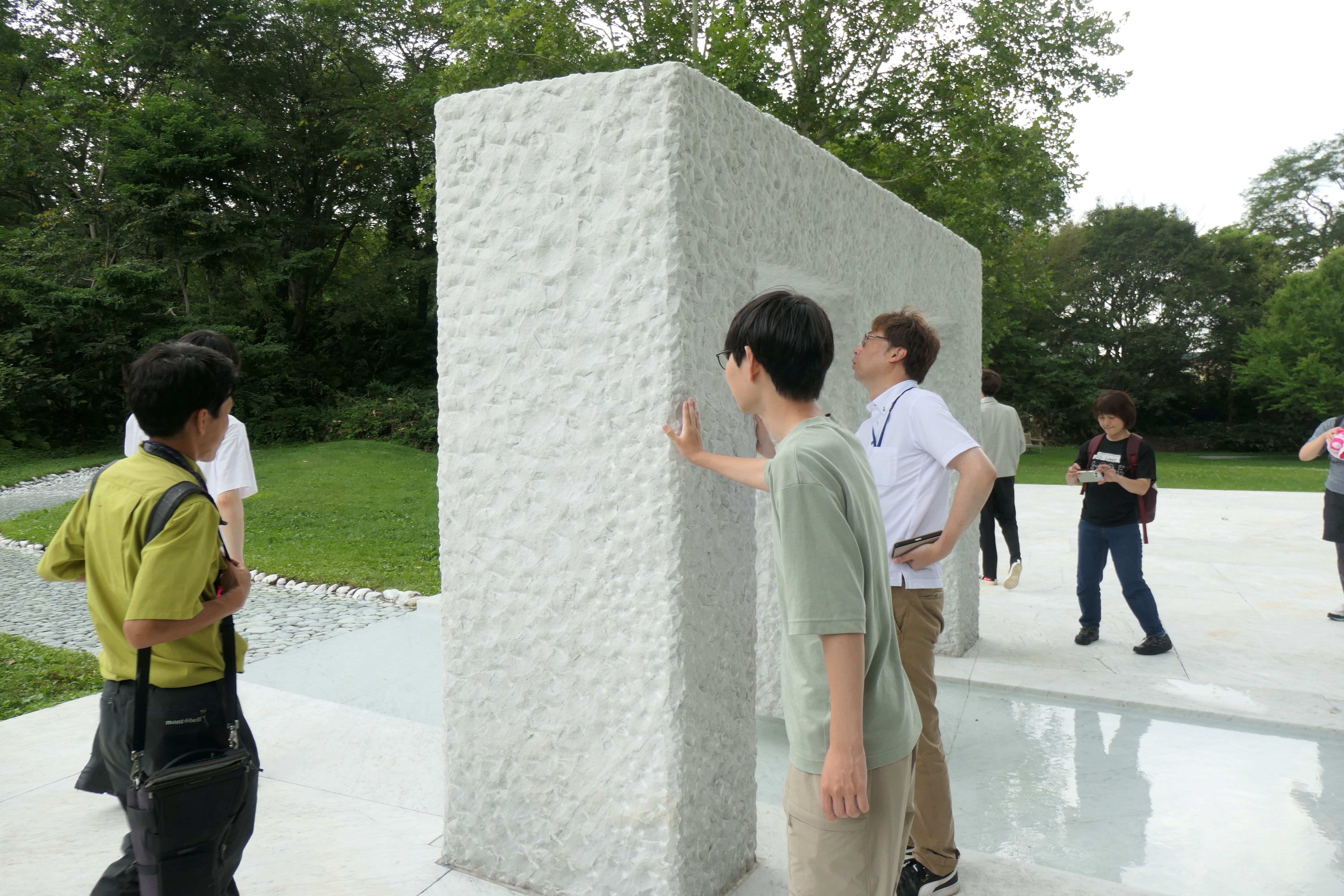 札幌に戻る前に、アルテピアッツァ美唄(美唄市)に立ち寄り、炭鉱の歴史、自然と一体となって展示されている彫刻作品などについて解説を受けました。アルテピアッツァ美唄は廃校となった小学校の校舎と敷地を利用して、彫刻作品を展示しています。きれいに管理された芝の上に多くの彫刻作品が展示されています。作品を手に触れることで、質感や温度なども感じることができる点が新鮮でした。また廃校を利用した施設は丁寧に手入れされており、とても洗練された印象でした。