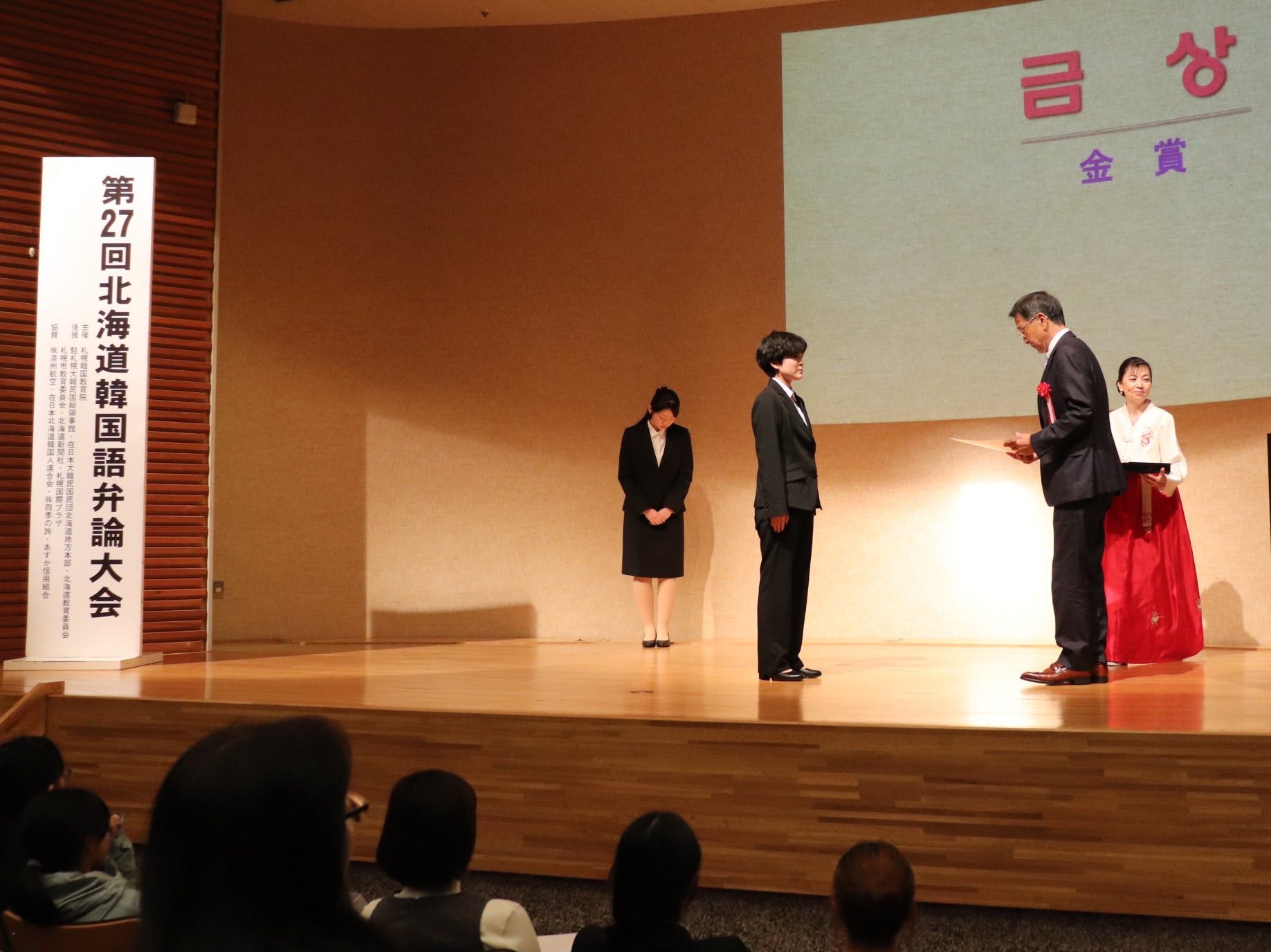 11月8日(土)、札幌韓国教育院主催の「第27回北海道韓国語弁論大会」が北海道立近代美術館講堂にて開催されました。本大会は、北海道地域における韓国への理解促進、日韓親善および国際交流の推進を目的として毎年開催されており、在日韓国人と北海道民が交流を深める中で、韓国文化と韓国語学習の魅力を共有する貴重な場となっています。